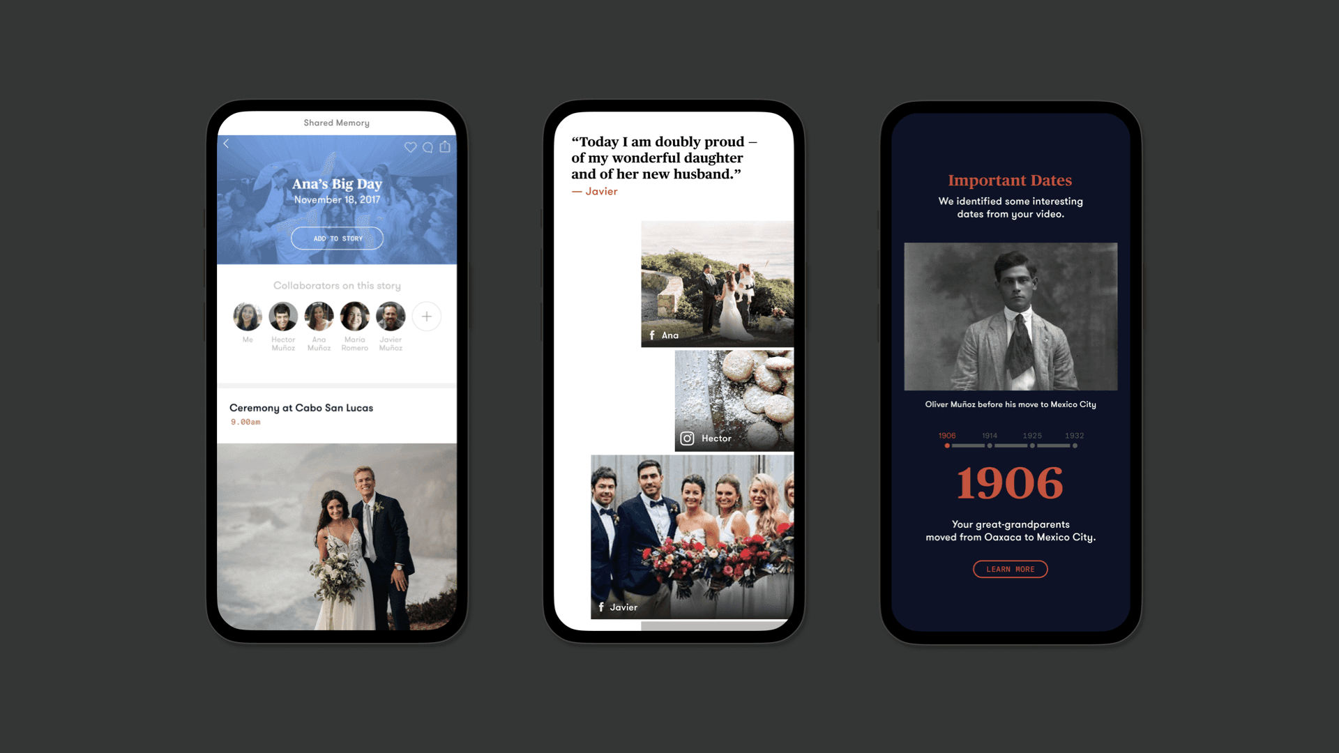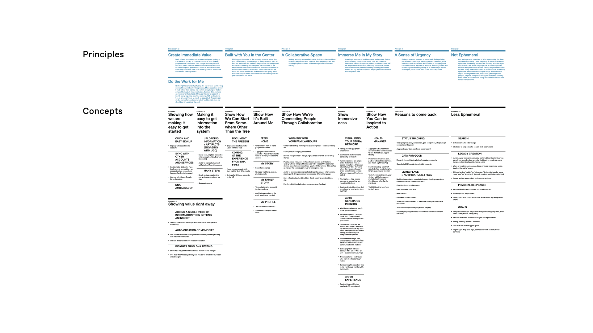 Product vision for Ancestry emphasizing the ability to collaborate with family members, taking advantage of the contemporary archive of accrued family history and a platform smart enough to make links from the present to the deep past.